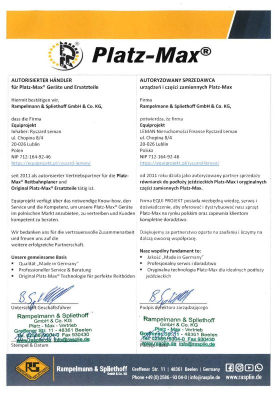 Równiarki Platz-Max od producenta z 25-letnim doświadczeniem to wysoka jakość – solidność oraz trwałość, łatwość użytkowania, a także możliwość dostosowania do różnych potrzeb i podłoży. Równiarki te są idealne do intensywnego użytkowania, mają możliwość regulacji ustawień – zapewniają szybką i efektywną pielęgnację nawierzchni.